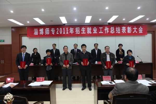 副校长郭小文宣读了“关于表彰2011年招生就业工作先进单位和先进个人的通报”文件。学校领导为招生就业工作先进单位和先进个人颁发了奖杯、证书。