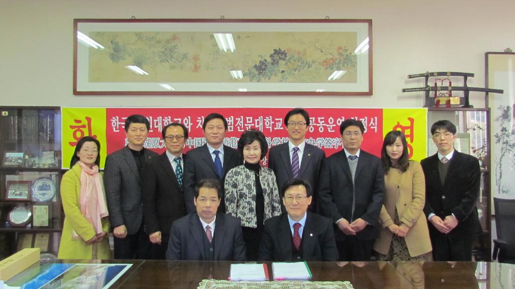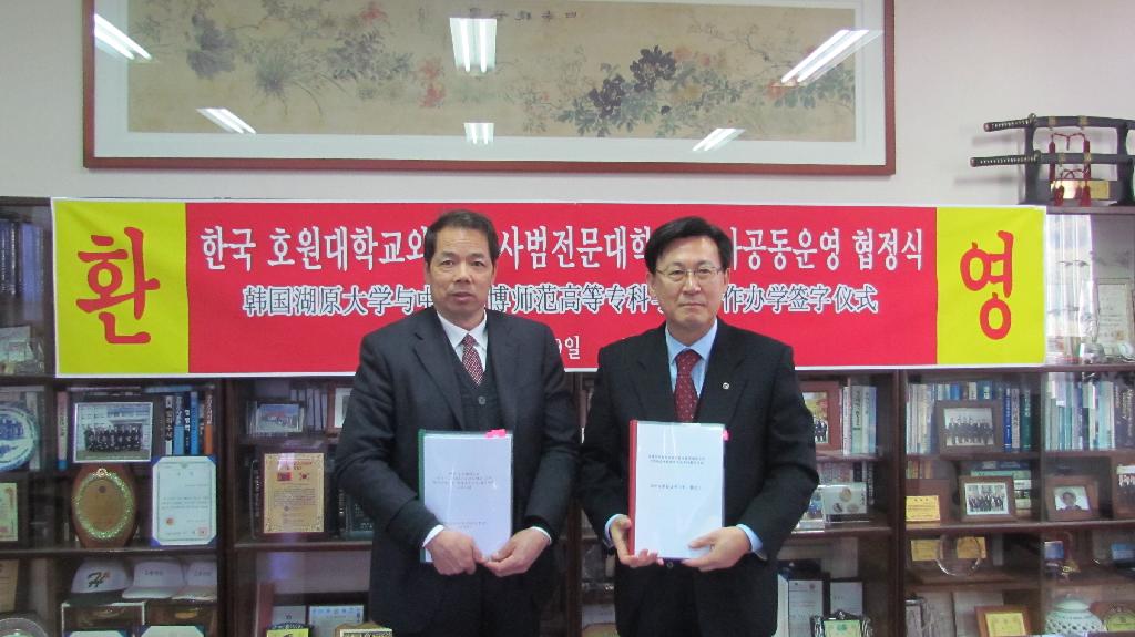 副书记李永敏与湖原大学校长姜熙成互换合作办学协议书