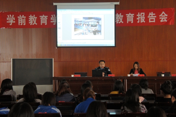 3月28日下午,为加强学生的安全防范意识和自我防护能,根据学校《关于安全纪律教育工作会议》的要求,学前教育学院在第一餐厅三楼报告厅举办法制安全教育报告会。邀请山东省未成年犯管教所教导员王金升同志为全院600多名五年制、3+3学生做了法制安全教育报告,相关班主任、辅导员参加了报告会。