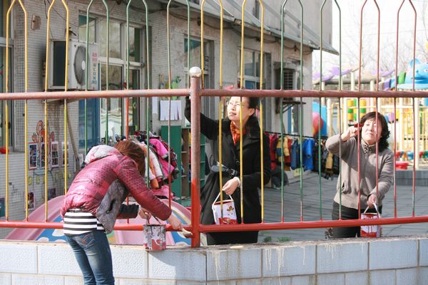 活动中,全体党员教师准时来到指定地点并各负其责,拿起刷子、油漆桶等工具,重点对幼儿园周围的栏杆进行打磨铁锈、擦拭灰尘和粉刷油漆,经过一下午的奋战,周围的栏杆换上了新装,校园更加美丽宜人,活动取得了良好的成效。各位党员纷纷表示:这是自己应该做的,而作为一名党员,更应该处处起到模范带头作用。