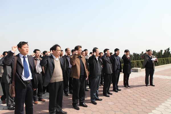 在巍峨的纪念碑下,参加扫墓的党员干部向逝去的先辈们默哀并敬献了花圈。李永敏发表讲话,讲话缅怀了革命先辈们的壮举,并要求全体党员干部在今后的工作中要加强学习,坚持以创先争优活动为动力,以积极推进社会主义核心价值体系建设为主线,围绕学校中心工作,进一步加强内涵建设,加强党员队伍建设,加强干部队伍建设,加强师德建设,以全体党员干部好的作风带动“五风”,努力形成聚精会神抓内涵,一心一意谋发展,改革创新上水平,重点突破创特色的良好局面,扎实推进我校“十二五”规划的实施和各项事业科学发展,为早日实现提升办学层次的目标奠定坚实的基础而奋斗。