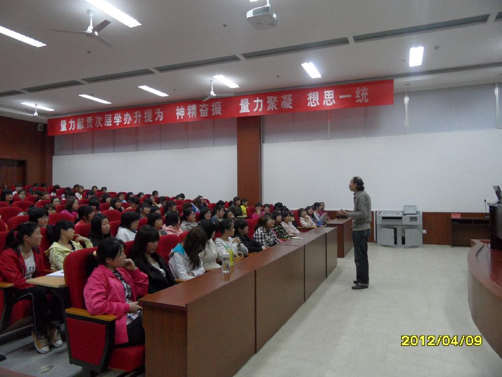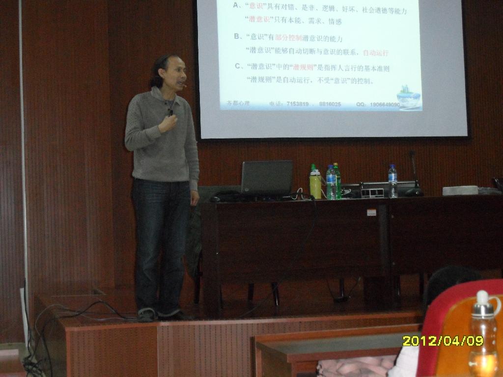 4月9日晚7:00,应大学生心理健康教育中心邀请,国家CETTIC职业培训高级班培训导师、陕西省学校心理辅导教师督导,中国促学工程专家委员会特聘专家,中国心理卫生协会会员,西安青年创业就业指导中心培训部主任,陕西心理卫生协会教育委员会委员,TAPL(激发潜能)快速心理咨询法的创始人吕明先生在奂山书院报告厅给我校学生做了题为《我的情绪我做主》的心理健康教育专题讲座。
