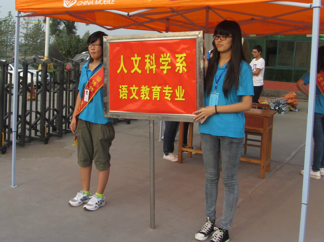 校园内,各种迎新标语耀眼夺目,人文科学系青年志愿者分队高举人文科学系的标牌,佩戴志愿者绶带,在学校南门口为新生提供接站、提行李、引路等服务。每位志愿者热情亲切、服务周到,受到新生及家长好评。