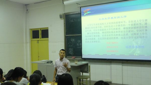 通过军事理论课老师生动的讲解,配合课件中的图片和视频,同学们对我国的一些军事方面的知识有了更深刻的理解。这样,同学们可以在军训的同时理论联系实际,拓宽知识面,更好的完成军训任务。希望2013级新生能保持这股精神,在军训结束时能给自己,给家长,给学校一个合格的答卷。