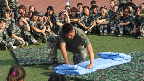 九月虽说秋高气爽,但是夏季的炎热却迟迟没有退去,同学们任由汗水从脸上划过,也丝毫不敢松懈。开始几天的训练任务主要有站军姿、停止间转法、跨步、碎步等简单动作。面对同学的错误,教官严厉指教,望尽快改正,跟上节奏。可以看到,他们是劳逸结合的,在中场休息时,各班还开展形式多样的互动。军训场地掌声与笑声不断,青春的活力和气息洋溢着整个校园。穿插在训练的间隙中,教官还向同学们展示了叠被子等内务训练。“一屋不扫,何以扫天下”。大家在仔细听完教官的细节讲解后回到各寝室行进内务整理,同时军人的严格制度也使大家肃然起敬。同学们纷纷表示教官的要求很严格、讲解很耐心。从大家兴奋的表情看来,军人风采已经深深影响了大家。