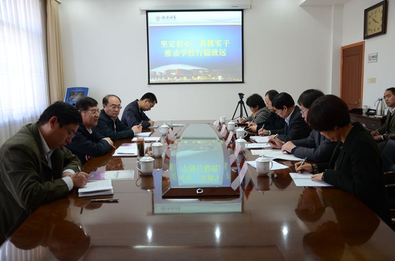 首先,周连华一行在学校二楼会议室召开了座谈会,党委书记王维华、校长王久亮、副校长秦克铸、周巧玲、郭小文及有关部门负责同志参加。会上,王维华对周连华一行的莅临表示欢迎,从咬定发展、聚焦内涵、突出稳定、改进作风、强化服务等五个方面汇报了学校一年多来的工作,并指出了学校发展中的两个难题。