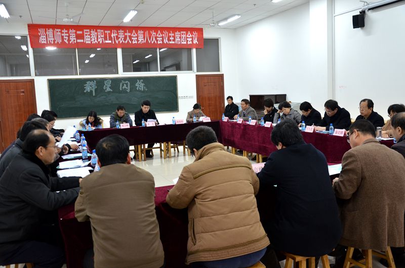 1月25日上午,淄博师专第二届教职工代表大会第八次会议在学校奂山论坛召开。主席团成员在主席台就坐。148名正式代表、11名列席代表、12名特邀代表出席大会。党委书记王维华发表讲话,校长王久亮代表学校作工作报告。副校长秦克铸主持大会。