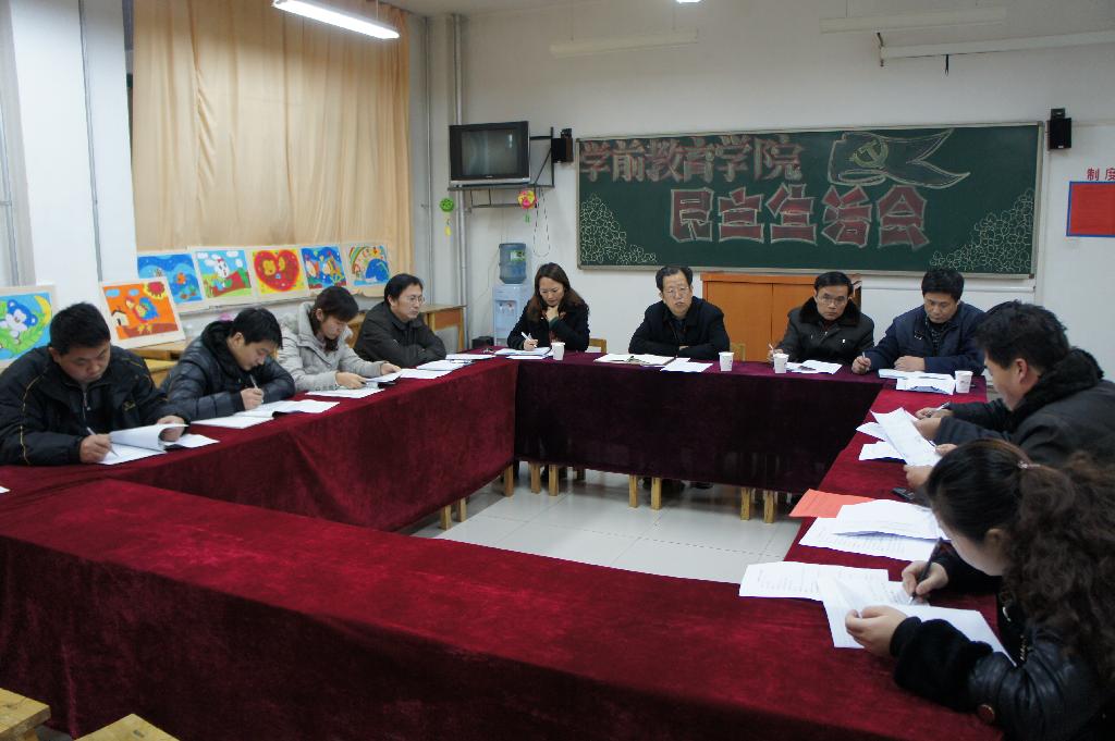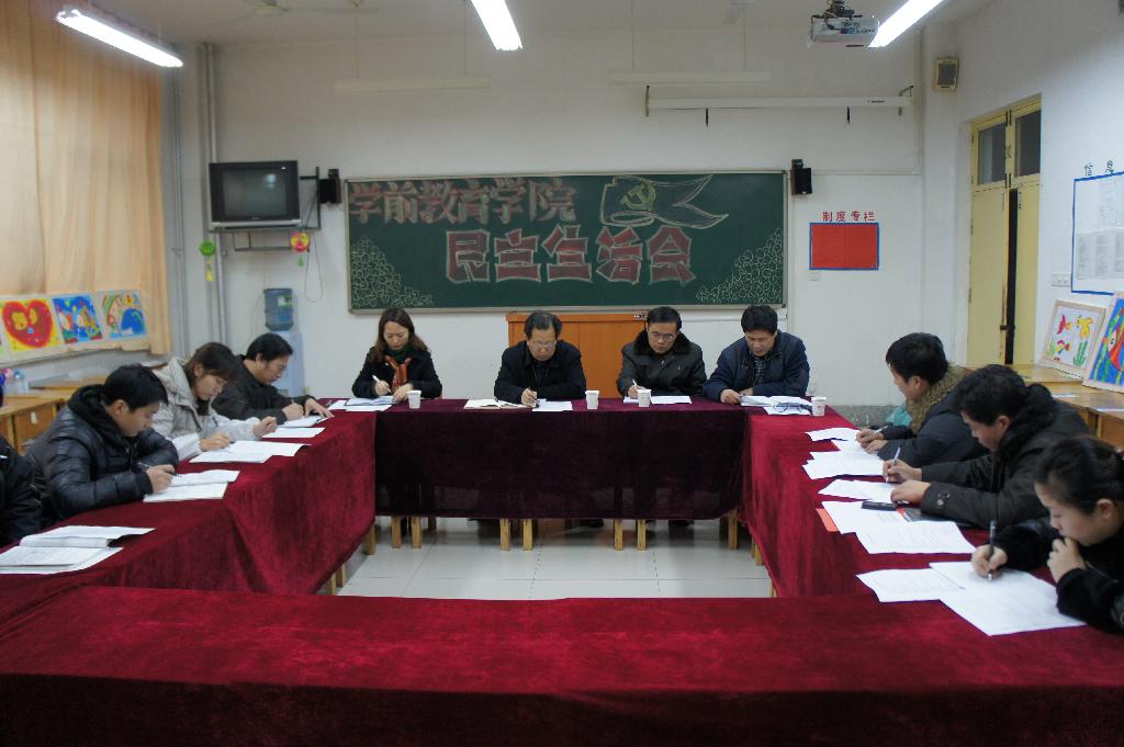 会议由学前教育学院党总支书记周京峰主持,会议要求通过对本学期自身工作情况,认真查找自身存在的问题和不足,本着团结—批评与自我批评—团结的方针,进行思想交流,围绕学院发展,提出建设性意见等三个方面进行总结交流。