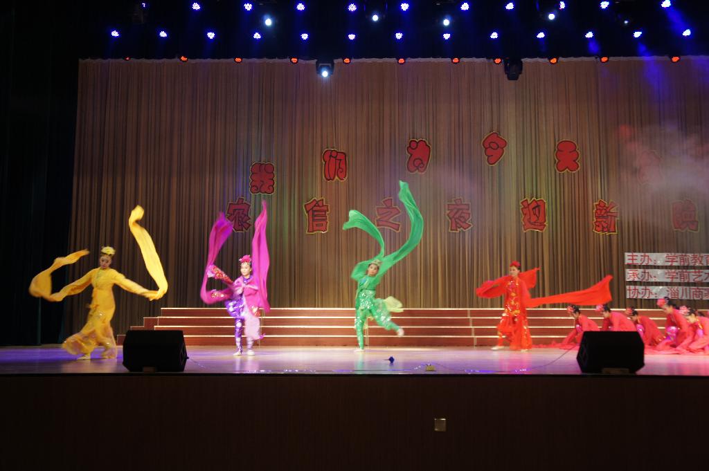 大型舞蹈《盛世辉煌》拉开了晚会的帷幕,本次晚会融教师、学生才艺展示于一体,节目形式丰富多彩,内容突出专业特色,多个节目曾在省市专业技能大赛中获奖。手工绘画作品现场制作、歌曲《草原上升起不落的太阳》、四手联弹《军队进行曲》,展示了山东省首届学前教育专业技能大赛获奖学生的专业水平;葫芦丝联奏、儿童剧、太极拳、钢琴独奏、拉丁舞、礼仪、舞蹈等节目,汇报了我院专业技能小组的成果;《美丽心情》、《幸福》、《妈妈我想你》、《长鼓敲起来》、《肖邦练习曲》、笛子独奏等节目,展示了我院专业课教师的专业功底。晚会在《我们为今天放歌》豪情氛围中圆满落幕。整场晚会,大气磅礴,掌声迭起,为在场师生留下了深刻的印象。