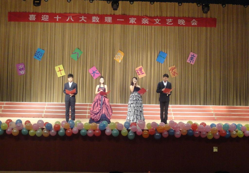 为迎接党的十八大胜利召开,11月7日晚7:00,数理科学系在大学生活动中心成功举办了“喜迎十八大,数理一家亲”文艺晚会。系领导与全系师生一同观看了文艺演出。