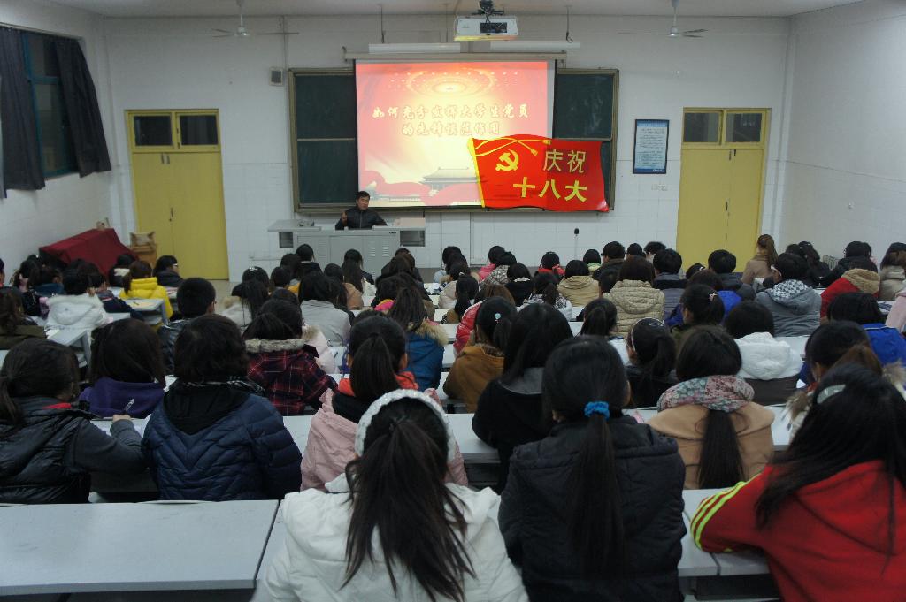 为庆祝党的十八大胜利召开,提高大学生党员的政治意识和责任感,11月13日,学前教育学院在第四阶梯教室举办党的十八大报告学习活动。活动由学前教育学院学生党支部书记陈宪恩主持,全院200名学生党员、发展对象、入党积极分子代表参加了学习讨论。