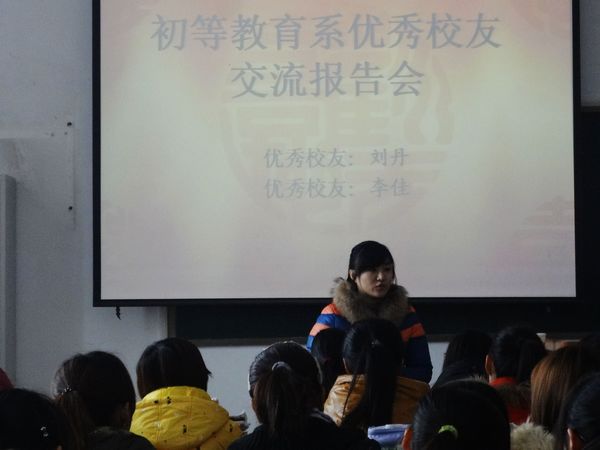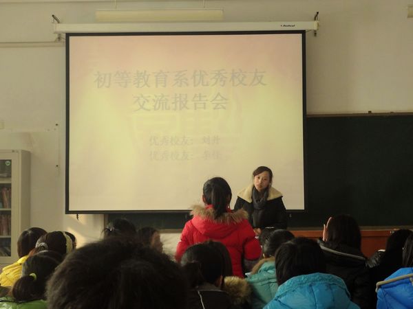 为帮助毕业生更好地做好就业准备,帮助新生更好地规划大学生活,以学校就业指导服务活动月的开展为契机,结合初等教育系就业工作开展和新生入学教育实际情况,我系邀请了2011届刘丹和李佳两位优秀毕业生重返母校,与同学们进行面对面交流活动。