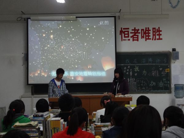 4月23日,初等教育系各班教室一片肃穆,同学们向远在四川雅安地震灾区的同胞祈福平安,并为此次地震中不幸遇难的同胞默哀。