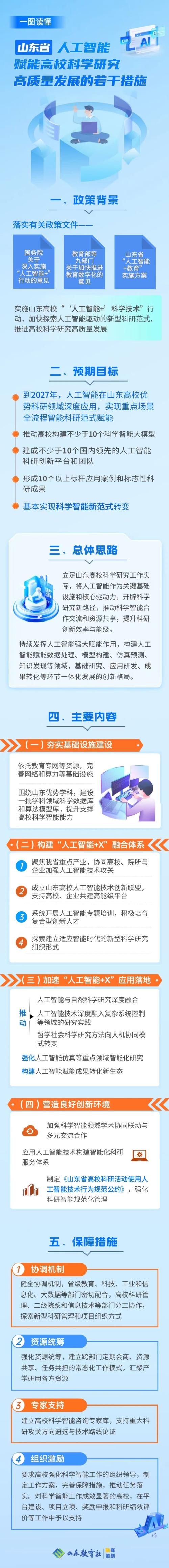 为落实有关政策文件,实施山东高校“‘人工智能+’科学技术”行动,加快探索人工智能驱动的新型科研范式,推进高校科学研究高质量发展,特制定该《若干措施》。
