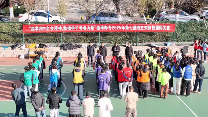 2025年11月19日下午,淄博师范高等专科学校第七届“四史”知识校园闯关赛在学校篮球场顺利举行。本届赛事以“深学四中全会精神,激扬学子青春力量”为主题,由学校团委与马克思主义学院联合主办,旨在深入学习贯彻党的二十届四中全会精神,推动习近平新时代中国特色社会主义思想入脑入心,积极营造“以赛促学、以学促行”的浓厚育人氛围。