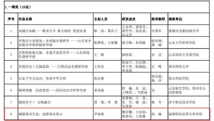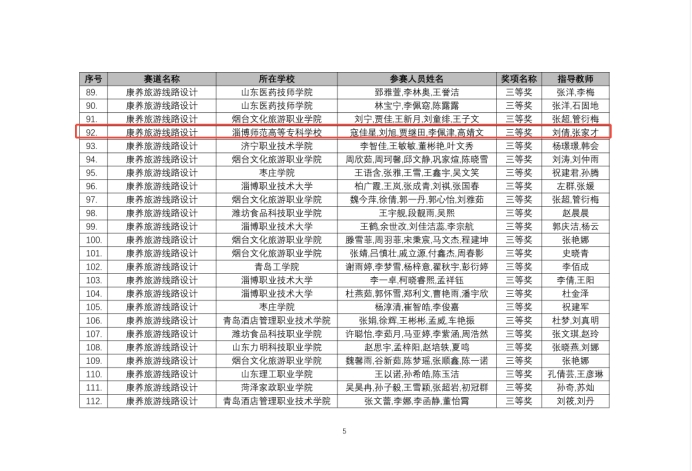 在第五届山东省大学生互联网+康养旅游大赛中,淄博师专文旅学院师生多点开花,收获颇丰。在康养旅游线路设计赛道,凭借兼具实用性与创新性的康养旅游线路方案,荣获该赛道三等奖;在研学旅游赛道,学院师生围绕研学课程开发、研学基地运营等方向设计的作品获二等奖两项,三等奖六项,获奖数量和质量均位居同类院校前列。