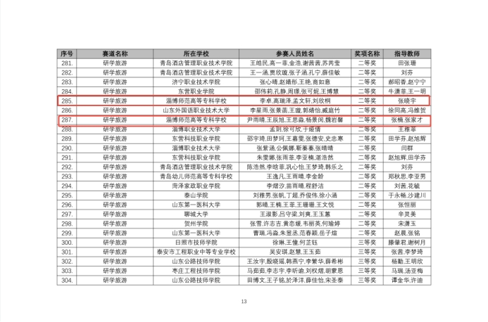 近日,淄博师专文旅学院师生在由山东省文化和旅游厅、山东省总工会、山东省教育厅、山东省农业农村厅、山东省绿色低碳高质量发展先行区建设领导小组办公室、山东省精品旅游促进会共同主办的“2025第六届山东省研学旅游创新设计大赛”和由山东省科学技术协会、山东省教育厅、共青团山东省委、山东省发展和改革委员会、山东省工业和信息化厅、山东省人力资源和社会保障厅联合主办的“第十七届山东省大学生科技节---第五届山东省大学生互联网+康养旅游大赛”两项省级文旅赛事中表现亮眼,凭借扎实的专业功底和创新的实践方案,斩获多个奖项,展现了学院在文旅人才培养方面的突出成效。