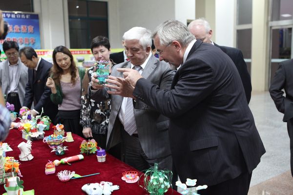 座谈结束后,来访客人在淄博市外事办领导和我校领导的陪同下先后参观了艺术教育系、杏坛音乐喷泉广场、图书馆、大学生活动中心、学前教育学院等场所和学生作品展示,对我校的办学条件、自然环境和学生的作品十分欣赏,并与相关的老师、学生进行了各方面的交流。
