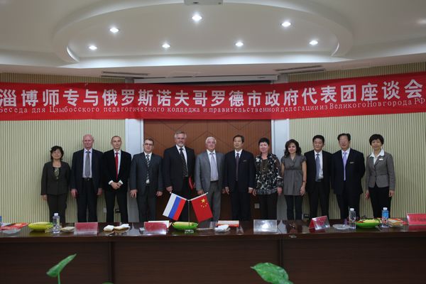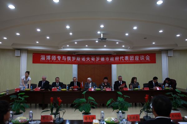 诺夫哥罗德市政府代表团第一副市长-安·瓦·泽姆利亚科(А·В·Земляк)对我校的热情接待表示感谢!他首先简要介绍了诺夫哥罗德市的基本情况,随后讲到只有交流才能推动社会发展,才能建设美好世界。诺夫哥罗德市希望与淄博市在经济、卫生、教育等方面加强交流与合作,特别是教育方面的交流与合作尤为重要。他代表诺夫哥罗德市的所有学校邀请我校领导前往访问。诺夫哥罗德国立大学校长-维·罗·韦贝尔(В·Р·Вебер)介绍了诺夫哥罗德国立大学的专业设置、国际交流与合作等方面的情况,邀请并期待我校师生到诺夫哥罗德国立大学学习、做客。诺夫哥罗德市杜马副主席-叶·费·菲利波娃(Е·Ф·Филиппова)介绍了该市的教育发展情况,诺夫哥罗德市在教育方面和多个国家的学校签订了合作办学协议,但目前与中国学校的合作办学还没有开展;希望淄博市的大学、中学、小学、幼儿园可以派师生前往参观、考察,并开展多方面的交流、合作。