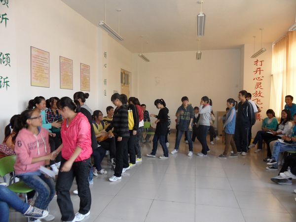 为做好新生心理健康教育工作,使新生能够尽快地适应大学生活,9月22日下午,大学生心理健康教育中心在实验楼4楼团体心理辅导室面向2011级学生开展了以“适应、健康、成长”为主题的团体心理辅导,作为新生适应性教育的重要组成部分,本次团体辅导拉开了我校新生心理健康教育的序幕。在各系自主推荐和学生自愿参与的基础上,来自数理、外语等系的50余名新生参加了本次活动。