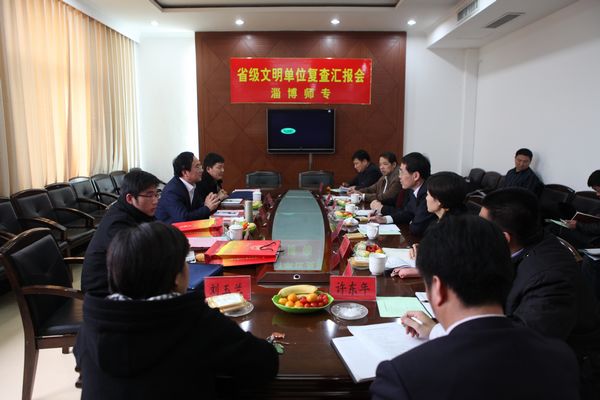 检查组组长王东宏听完汇报后,对学校在精神文明建设工作中取得的成绩给予了充分的肯定,对学校成功举办建校六十周年校庆庆祝活动表示祝贺。他指出,淄博师专连续20年保持着省级文明单位称号,精神文明建设工作有着优良的传统,一是领导重视,精神文明建设工作有地位。学校一贯注重精神文明建设,注重内涵发展,学校影响力和社会地位不断提升,今年的60周年校庆等活动更是集中展示了学校多年来精神文明建设的成果;二是注重结合,精神文明建设工作有特色。学校把精神文明建设同教学科研、大学生思想政治教育等多方面紧密结合在一起,在全市文明单位中特色鲜明;三是工作扎实,精神文明建设工作有成果。在学校精神和校训指引下,学校在学生培养、专业建设、校园文化建设等方面都取得了可喜的成绩,享有很高的社会声誉。希望淄博师专保持荣誉,发扬传统,再接再厉,积极探索,不断改革创新,在全市经济文化发展建设中发挥更大的作用。