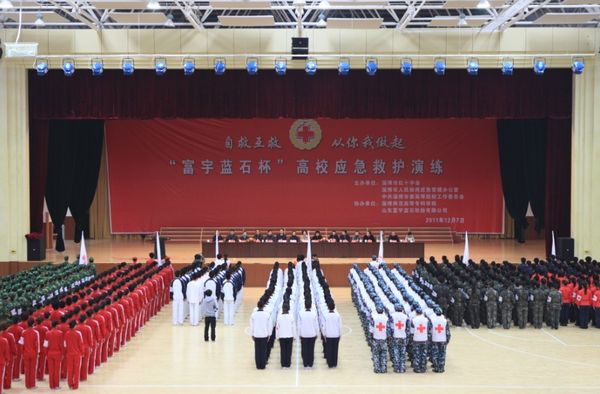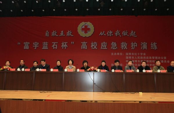 12月7日上午,由淄博市红十字会、市应急办、市委高校工委主办的驻淄高校大学生应急救护演练活动在我校大学生活动中心举行。山东理工大学、淄博职业学院等7所驻淄高校参加了本次应急救护演练,数理科学系组织志愿者代表我校参赛。市人大常委会副主任张庆盈,市政协副主席、市红十字会名誉副会长尚秋云,省红十字会业务部副部长、救护培训中心主任马俊娥,市政府应急办副主任周洪刚,市委高校工委副书记李诤声,市红十字会党组书记、常务副会长王长春,校长王久亮,副校长郭小文等领导出席活动。