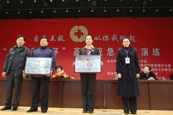 7所高校分别演练了创伤包扎、心肺复苏、徒手搬运等救护技能。数理系师生利用课余、节假日等时间坚持训练,取得了可喜的成果,他们的演练真实、生动,技能使用正确、娴熟,得到了评委们的一致好评。最终我校代表队获得本次演练活动二等奖。