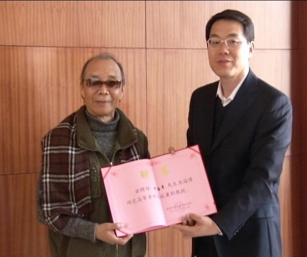 学校党委书记张洪亮、校长王久亮、副校长周巧玲在办公楼二楼会议室亲切会见了方教授,张洪亮向方伯年赠送学校纪念品、王久亮颁发了学校兼职教授聘书。