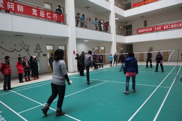 为庆祝2012年元旦,深入贯彻《全民健身纲要》,活跃教职工业余文化生活,增进教职工身心健康,提高广大教职工的凝聚力和向心力,2011年12月20日,我校“元旦杯” 教职工毽球比赛拉开战幕。