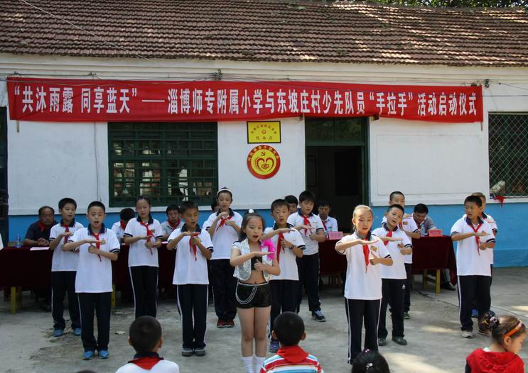 9月1日,淄博师专帮包村----淄川区太河镇东坡庄村村委大院里欢歌笑语、喜气洋洋,淄博师专附小与东坡庄村正在开展小学生“手拉手”活动启动仪式,12对小学生成功结对,建立了“手拉手”小伙伴互助关系。淄博师专附小、太河镇政府、太河镇峨庄中心校等单位主要领导参加了活动仪式。