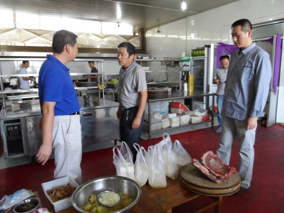 根据安全生产标准,检查人员查看了饮食管理工作档案资料,对第一学生食堂、新星超市、第二学生食堂和黉园餐厅等餐饮场所进行了实地检查。检查了食品原材料进货验收台账、原材料及食品仓储、食品留样、食品制作流程、餐具消毒、剩饭剩菜处理、从业人员健康证明、燃气规范使用等项目。对于检查过程中存在的薄弱环节,提出了意见和建议,并限期改进。