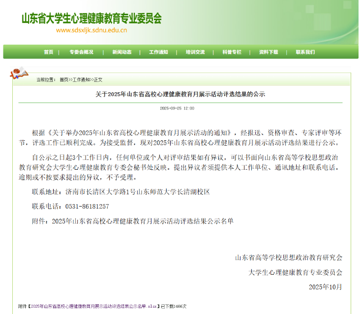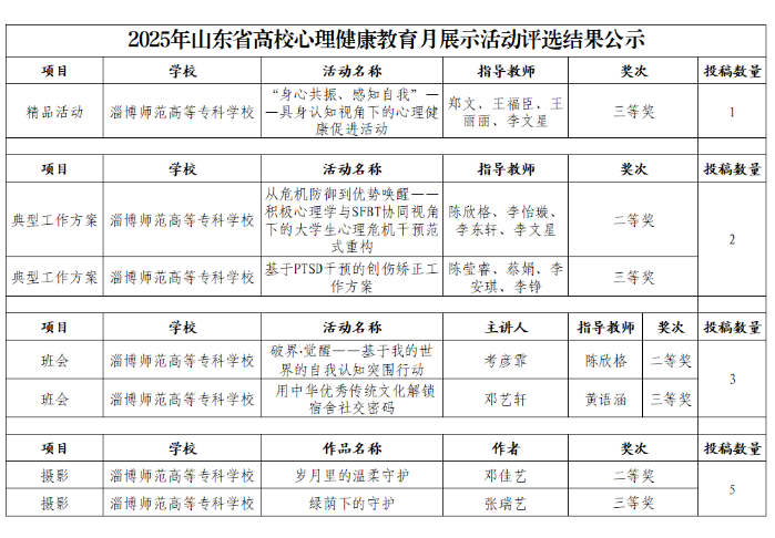 淄博师专在2025年山东省高校心理健康教育月系列活动评选中获佳绩
