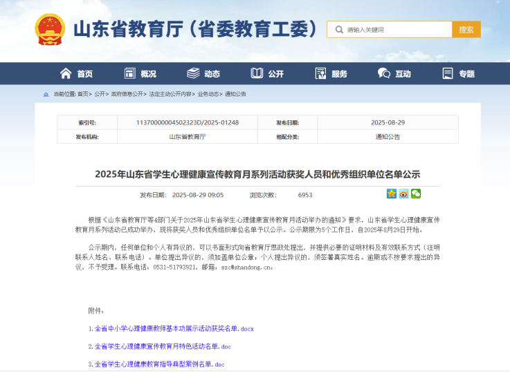 近日,山东省教育厅和山东省大学生心理健康教育专业委员会公布了2025年山东省高校心理健康教育月系列活动评选结果,我校获全省学生心理健康教育指导典型案例1项,二等奖3项,三等奖4项。此次获奖项目涵盖了心理健康教育特色活动、心理健康教育典型工作方案、心理健康教育主题班会等多个类别,充分展现了我校在大学生心理健康教育领域的积极探索与实践成果。