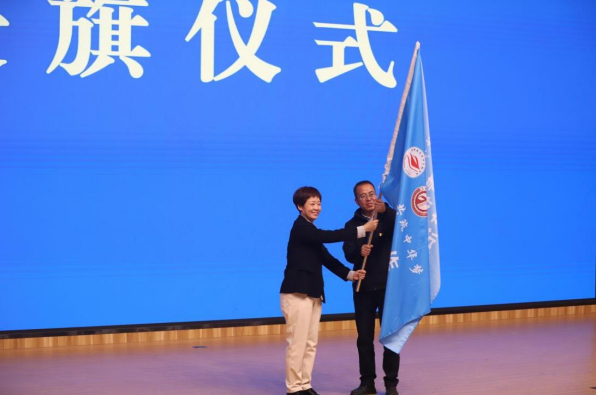 在随后举行的授旗仪式上,周巧玲将象征交流与使命的旗帜交于青高职院代表。旗帜挥舞间,不仅传递着两校对此次交流活动的殷切期望,更标志着两校合作交流开启了新的征程,为后续调研学习与文化互动奠定了坚实基础。