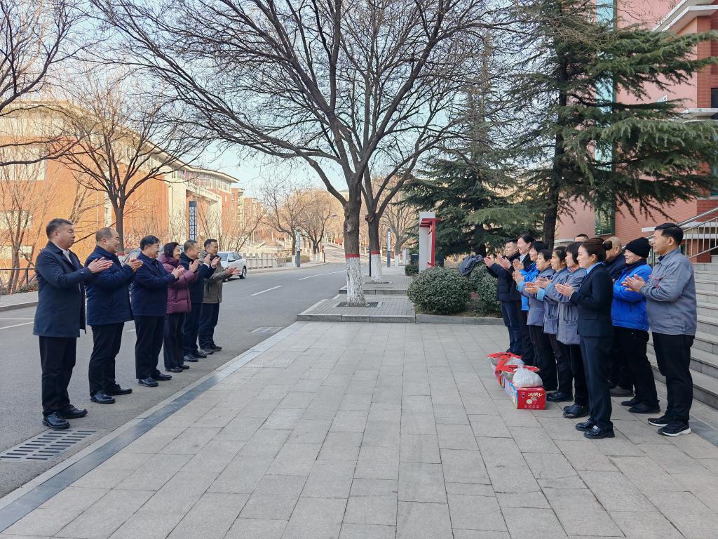 2月16日上午,在农历新年来临之际,学校党委书记满军,党委副书记、校长高霞,党委副书记刘红秀,党委委员、宣传统战处处长朱连斌亲切看望并慰问了春节期间坚守岗位的安保、后勤一线工作人员。